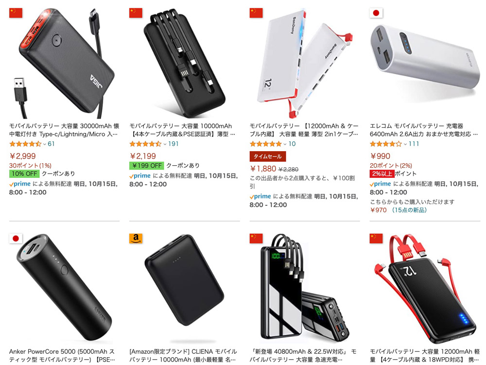 特に「ガジェット」や「モバイル機器」などのカテゴリーでは、検索結果の上位に表示される商品の出品元は中国がほとんどです。