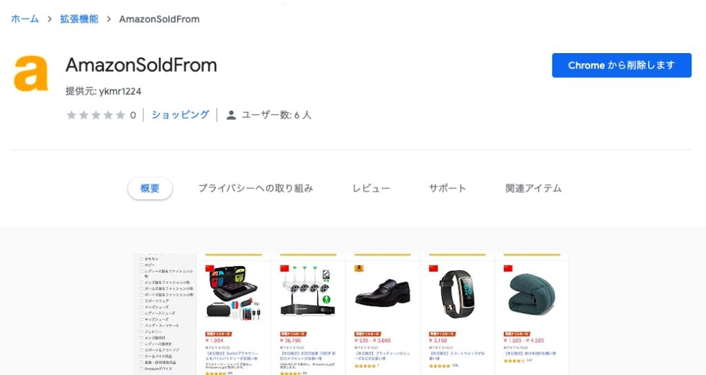 「AmazonSoldFrom」は、Google Chromeの拡張機能です。