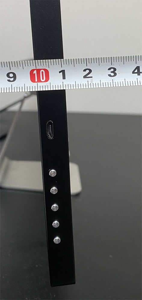 ディスプレイ本体の厚みは1.1cmほどと薄いためスマホスタンドに置いて使用することもできます。