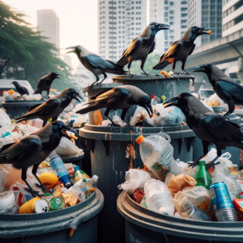 さらに、カラスは学習能力が高く、他のカラスがゴミ箱から食料を見つけるのを見ると、それを真似て同じ行動を取るようになります。