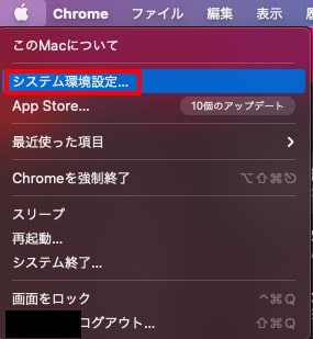 まずは左上のリンゴマークからシステム環境設定を選択します。