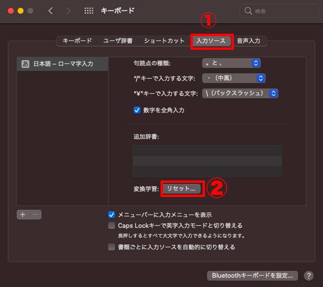 入力ソースを選択し、最下部までスクロールすると変換学習という項目があるのでリセットを選択します。