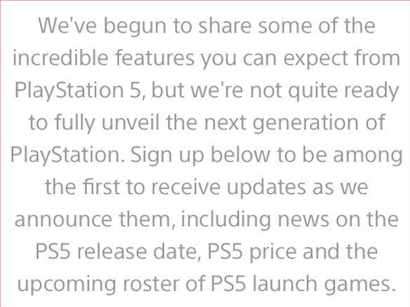 という情報しか記載されていませんが、ニュースレターにメールアドレスと、生年月日登録することで、PlayStation 5の最新情報をいち早く受け取ることができます。