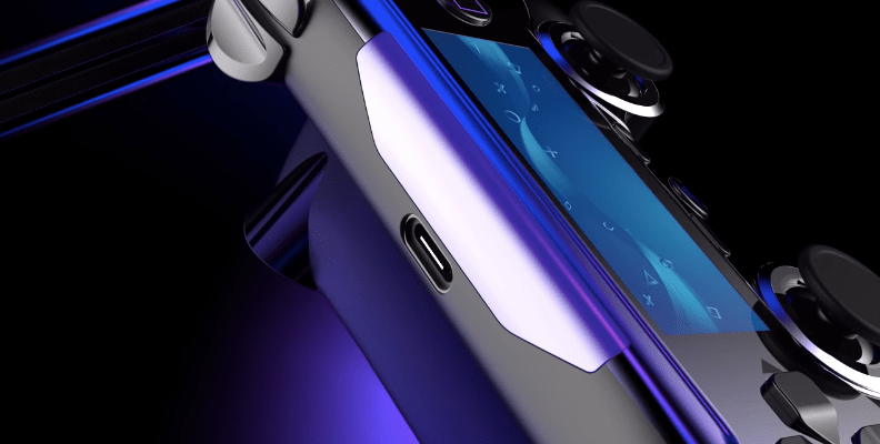 Dual shock5(仮称)は幅が広くなり、Dual Shock4ではタッチパッドになっている部分にミニスクリーンが搭載されています。