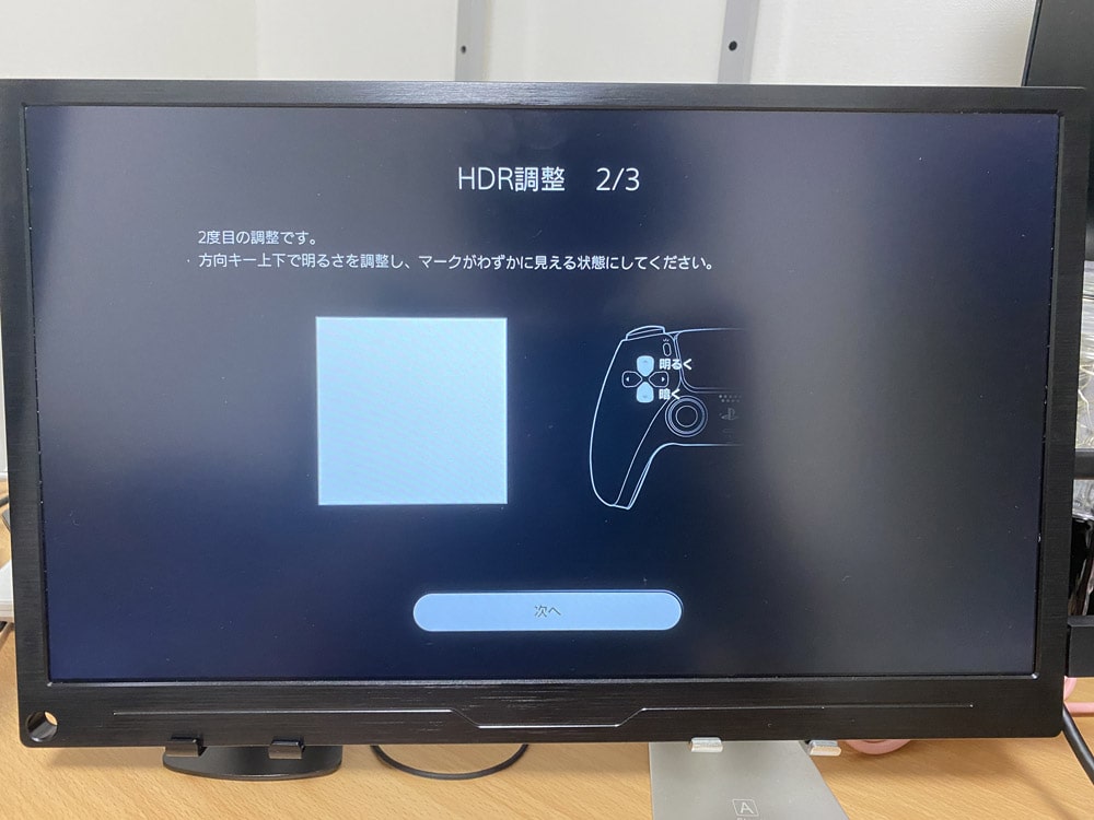 モバイルモニターとPS5を接続した状態で起動すると、まずHDR調整が始まります。