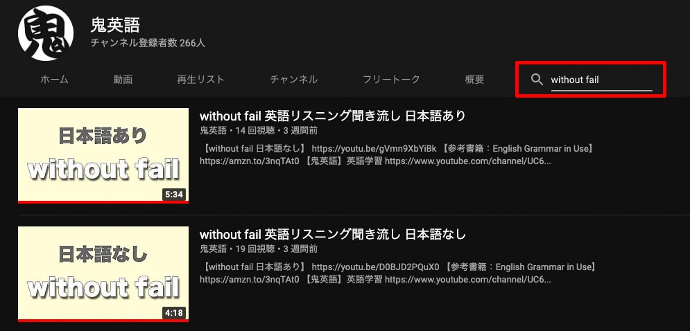 動画数が多いチャンネルから探すときに特に役立ちますが、ブラウザ版YouTubeでしかチャンネル内検索はできません。