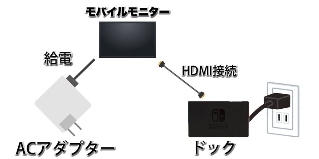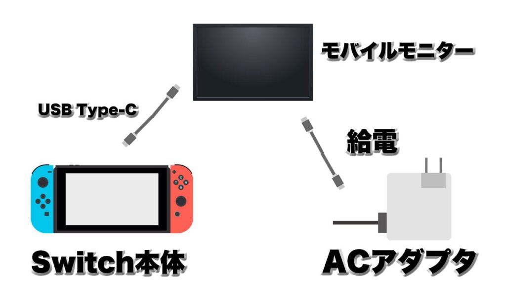 それでは、Nintendo Switchとモバイルモニターの繋ぎ方を解説します。